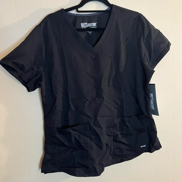 BARCO Grey's Anatomy Large Black Scrub Top V-Neck 2 Pocket Shirred Back - $29 New With Tags - From Brandy