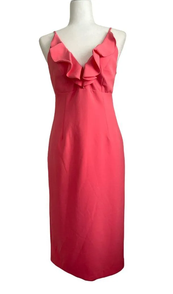 Coral Fitted Ruffle Midi Dress Pink Size 6 - $76 (30% Off Retail) New With Tags - From Kathys