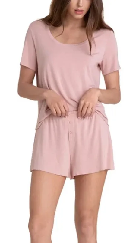 - In Rose Mist (Light Pink) - Includes: Scoop Neck Tee and Flutter Shorts Wind down in the oh-so-com... Show more