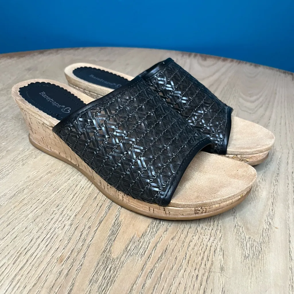 BareTraps Flossey Woven Cork Wedge Sandal Comfort Slip On Women’s Size 9 Black - $21 - From Amanda