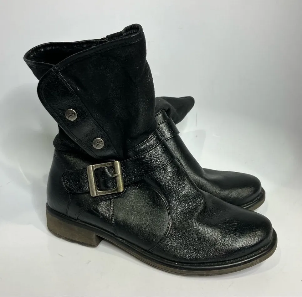 Baretraps Shakira black leather boots women’s size 9.5 buckle, casual, zipper closure Very good p... Show more
