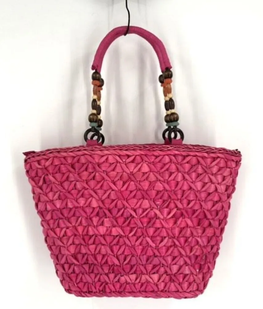 NWT Barney’s NY Pink Straw Beaded Handle Tote Bag Things new with tags but does have a couple flaws... Show more