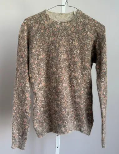 Beautiful knit sweater in a peach and gray color palette. Made in Italy, this fuzzy sweater is made... Show more