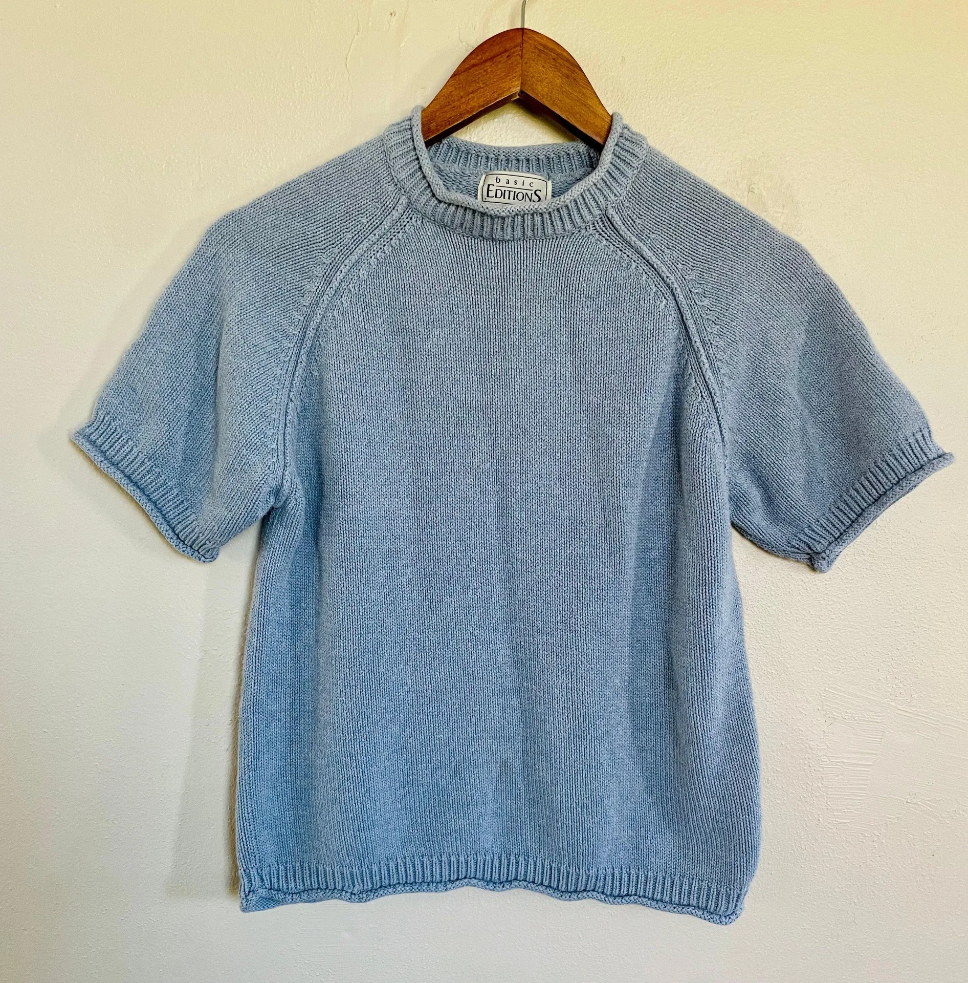 Basic Editions VINTAGE Blue Short Sleeve Knit Sweater Size M - $22 - From Morgan