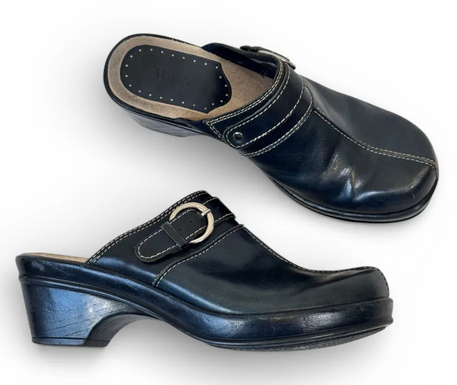 Bass Black Leather Slip On Clog Mules Womens 8 Leona Confort Shoes Classic Y2K - $35 - From Lisa