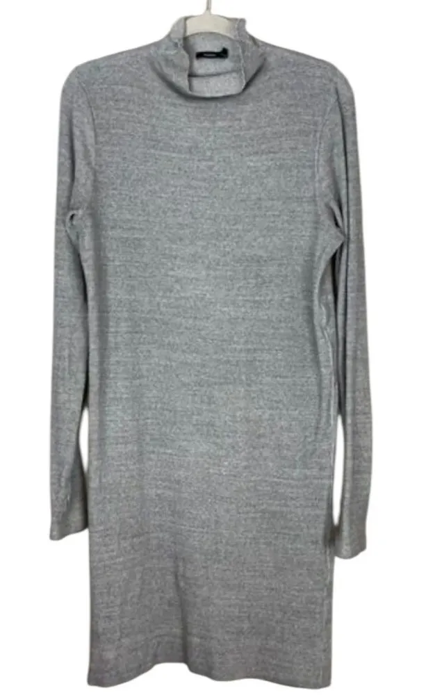 Bassike Rib Funnel Neck Dress Grey Marl size Small NWT 100% cotton Designed and made in Australia, this piece features a sleek mock neck and long sleeves in a mid-weight stretch fabric that hugs comfortably. Great for layering or wearing solo. 17.25” pit to pit 41” length (27)