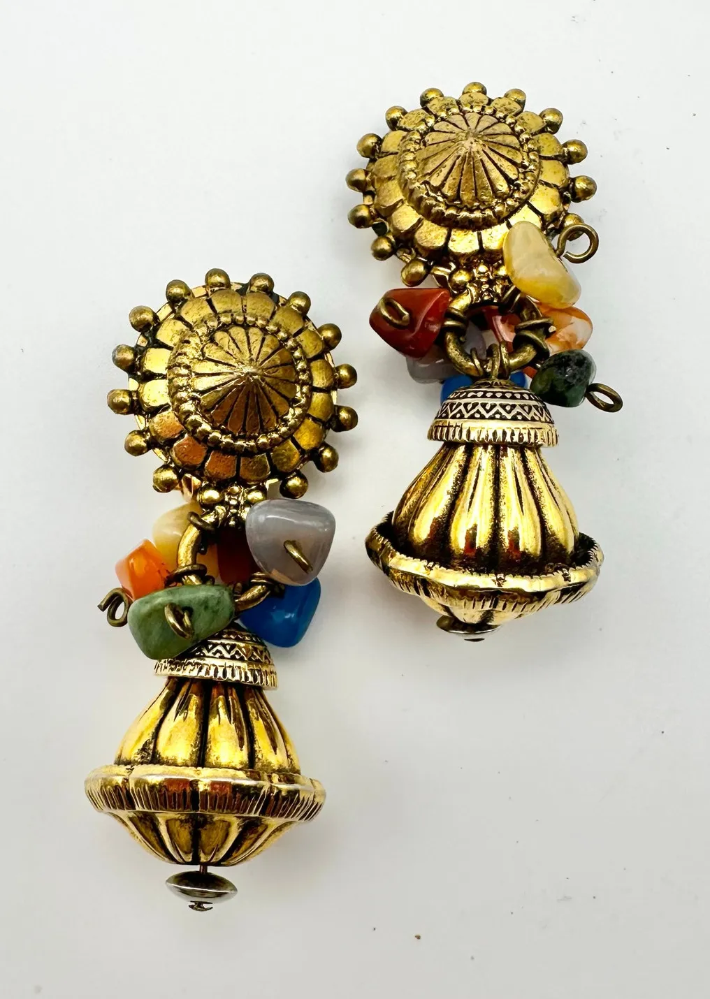 Marked Bat Ami Coffers Israel on backing of earrings. Gold tone ornate dangle long chandelier clip on earrings with multi colored stones attached. Preowned in good condition with light signs of wear throughout. Lighter weight. Measurements: approximate 2" long All items come from a smoke free/pet free home. No trades or modeling. As always, offers are welcome. Thanks for stopping by!