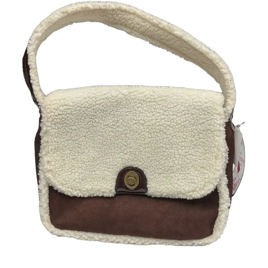 New Bath and Body Works Hand Bag Tote Faux Fur Suede Purse NWT Latch Closure One Handle Inside zipp... Show more