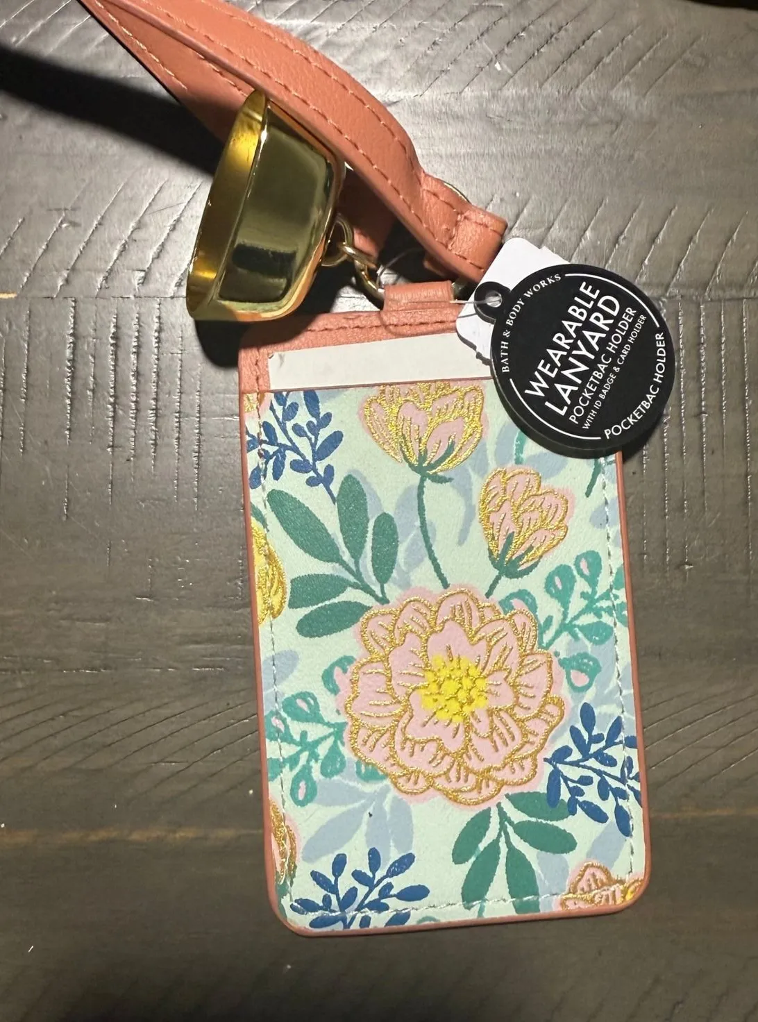 A Bath and Body Works wearable lanyard and pocket bag holder adorned with a beautiful floral pattern... Show more