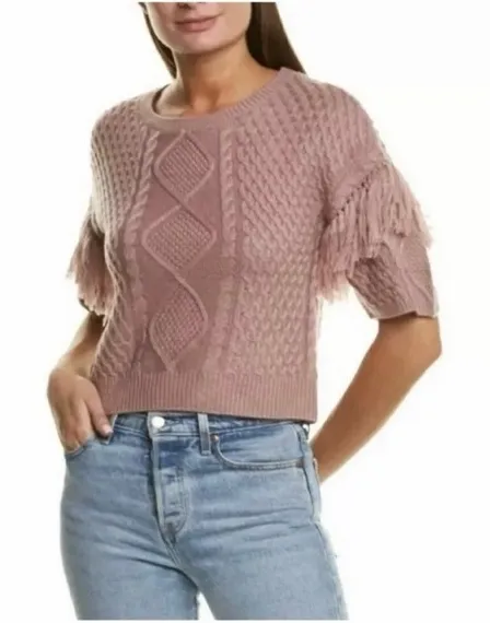BB Dakota Mauve Pink Fringe Cable Knit Sweater ~ brand new ~ incredibly soft ~ dusty rose shade ~ cr... Show more