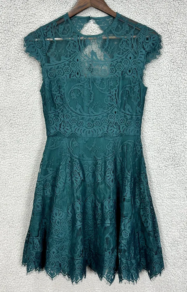 BB Dakora Rhiaana Open Back Lace Fit & Flare Cocktail Dress Green Womens size 2 Glam HOCO Party Even... Show more