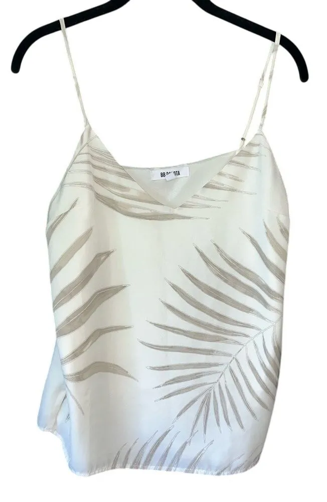 Elevate your summer wardrobe with this ethereal white camisole featuring a subtle palm leaf print in... Show more