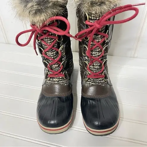 Sorel Tofino Waterproof Women Boots Size 8 women’s Fur lined Red laces Tall winter lace up boots... Show more