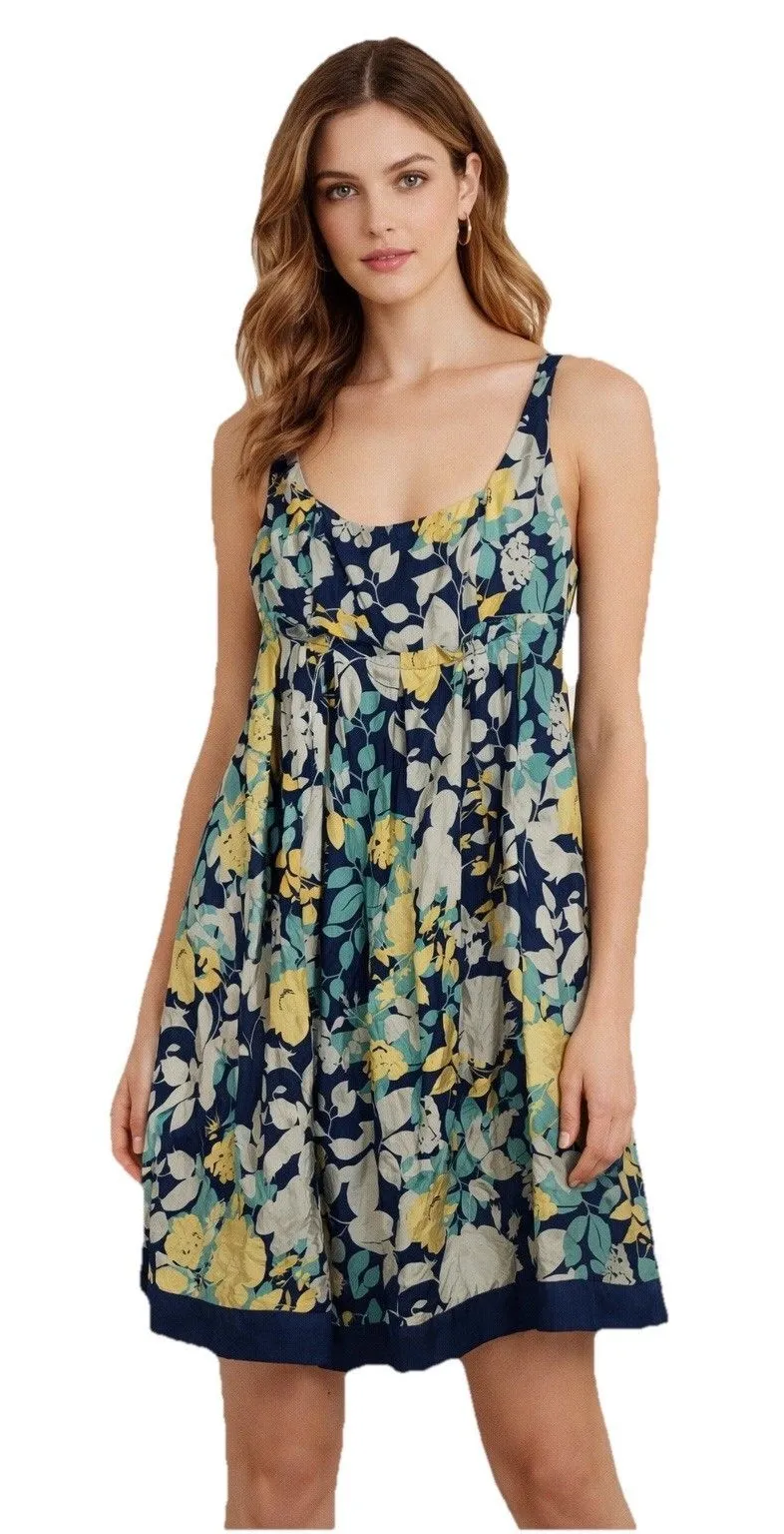 BCBG Paris Dress Floral Sleeveless Pleated Skirt Square Neck Silk Blue/Yellow 2 Blue - $17 - From Rachelle L