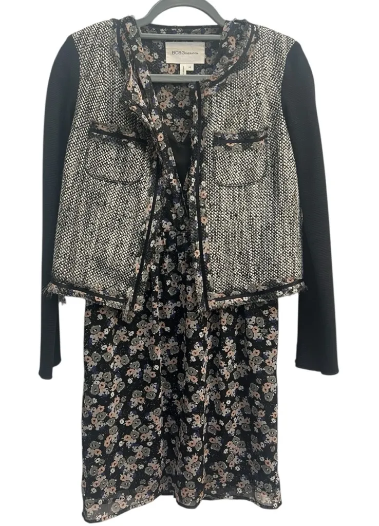BCBGeneration Women’s Dress and Jacket Ensemble Size XS. Dress: Floral. Sweetheart neckline under... Show more