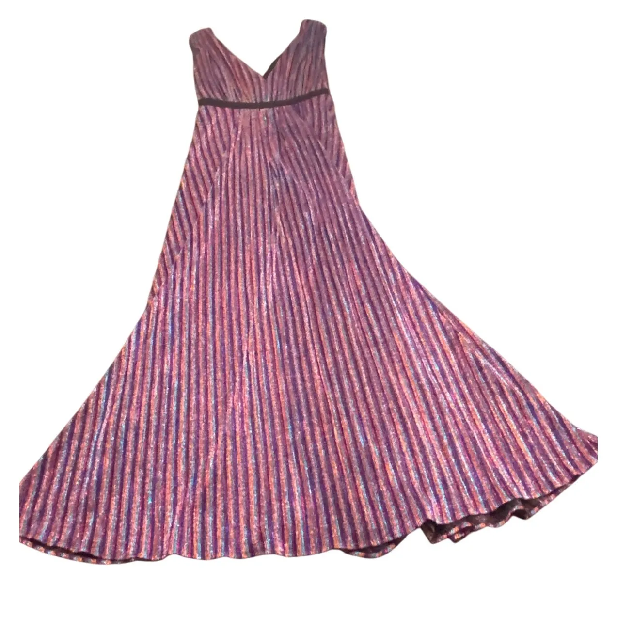 BCBG Holiday Party Dress Metallic Rainbow Pleated Maxi Dress – Deep V Neck Evening Gown Y2K Disco Gl... Show more