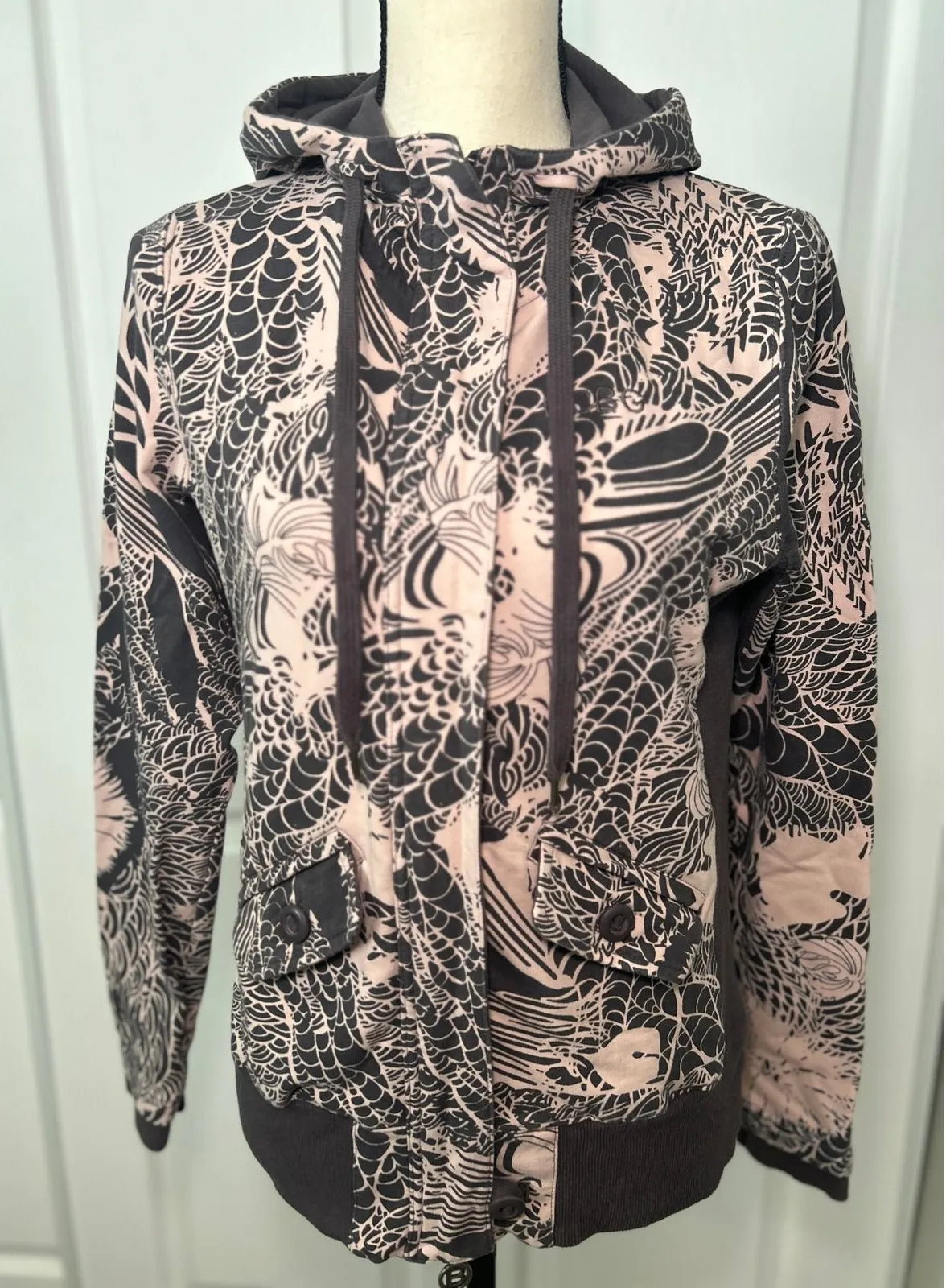 Eye-catching hooded jacket from BCBGMAXAZRIA, featuring a unique abstract print in pink and purple.... Show more