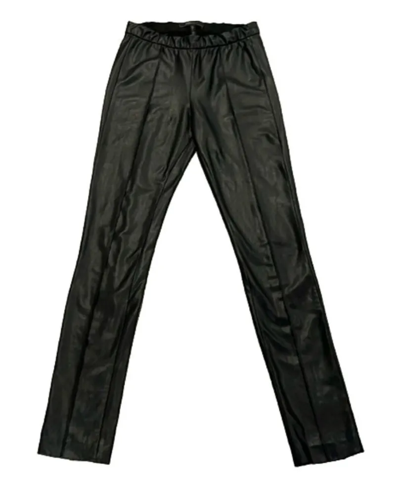 BCBG Maxazria XS stretch soft faux leather pant leggings accented w/ raised hem GUC - general wear... Show more