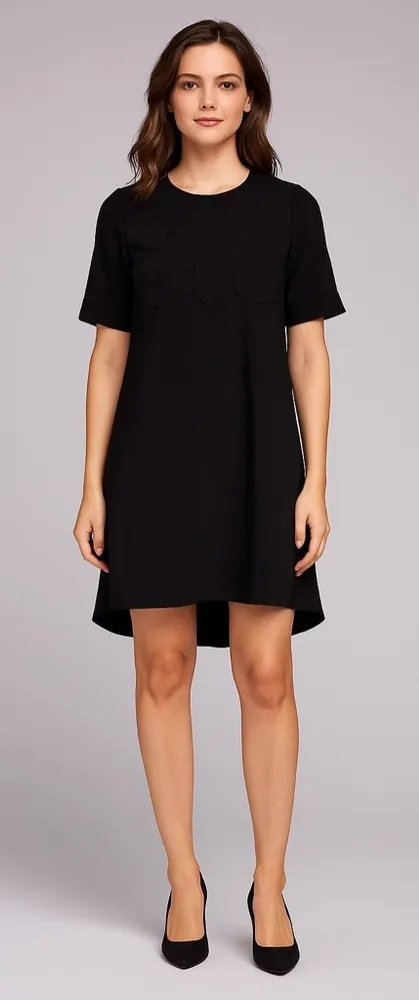Black short sleeve hi-low round neckline dress. Has cute see through knit detail on chest and sleeve... Show more