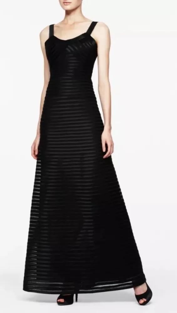 BCBGMaxAzria Black Gown Maxi Structured Satin Gown Size 6 Prom Homecoming Mesh BCBGMaxAzria Black S... Show more