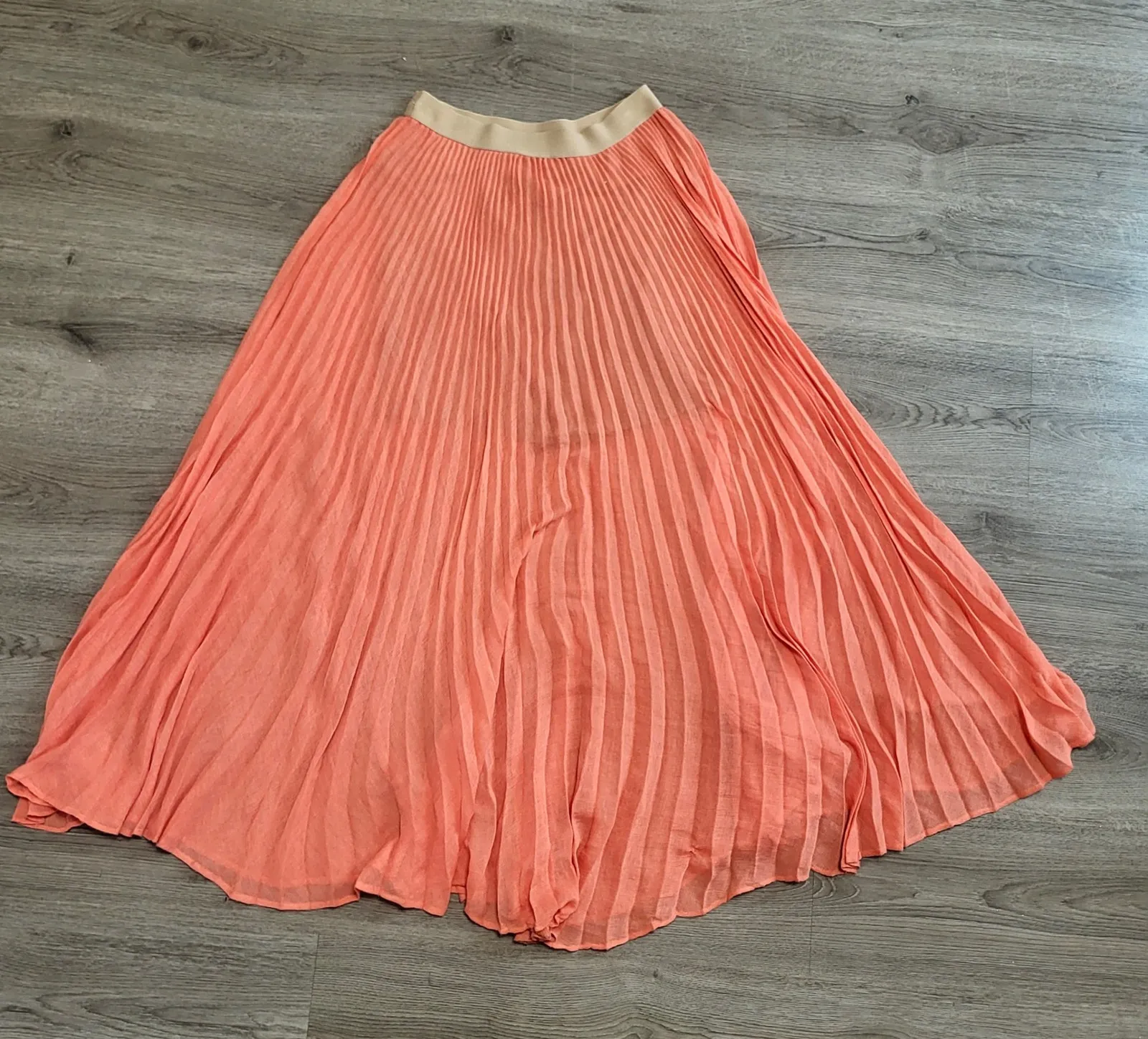 BCBGMAXAZRIA coral pleated maxi skirt with an elastic waistband women's size small. This flowing ski... Show more