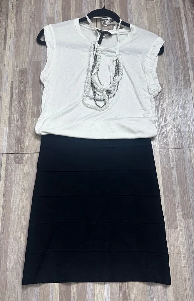 Elevate your style with this chic black and white dress. Its sleek design ensures a flattering fit,... Show more