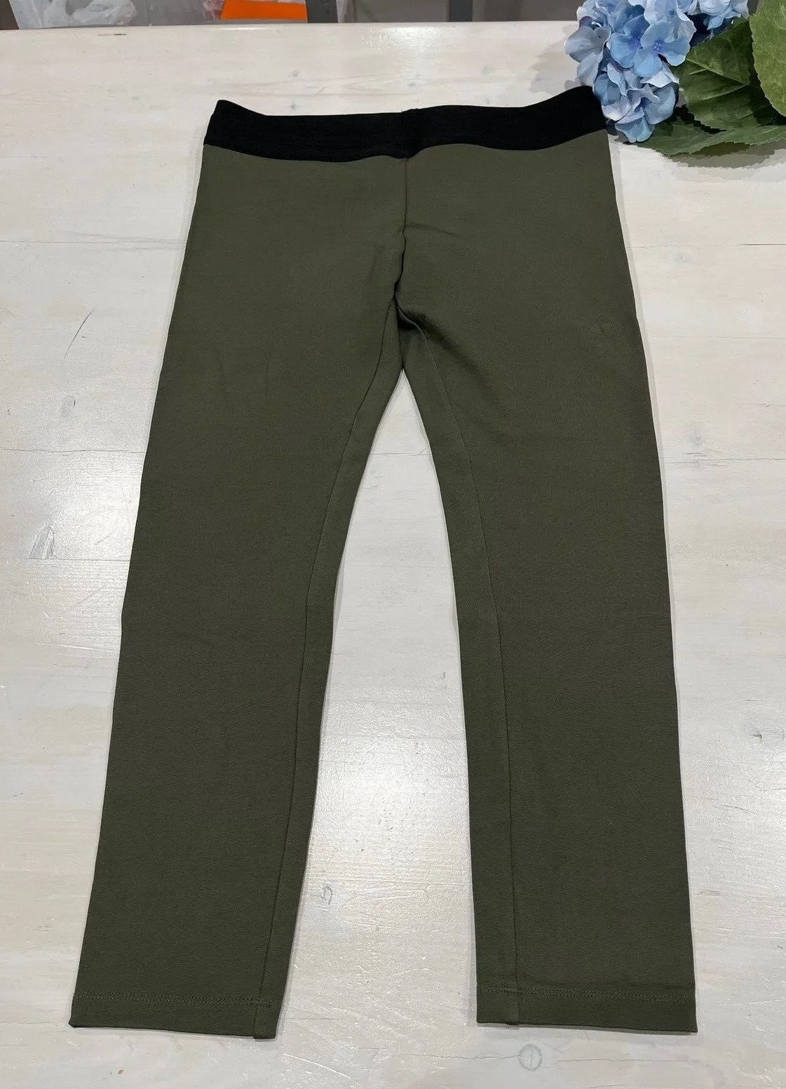Stylish and versatile leggings in a solid olive green color, perfect for everyday wear. These leggings feature a comfortable high waistband for a flattering fit and a sleek, streamlined silhouette. The stretchy fabric allows for ease of movement, making them ideal for both casual outings and light workouts. Pair them with a tunic and flats for a relaxed daytime look, or dress them up with a blouse and heels for a night out. Great for yoga sessions or running errands. There is an indentation on the back of the leg due to the way it was stored in my drawer. Should come out in the wash. See photo