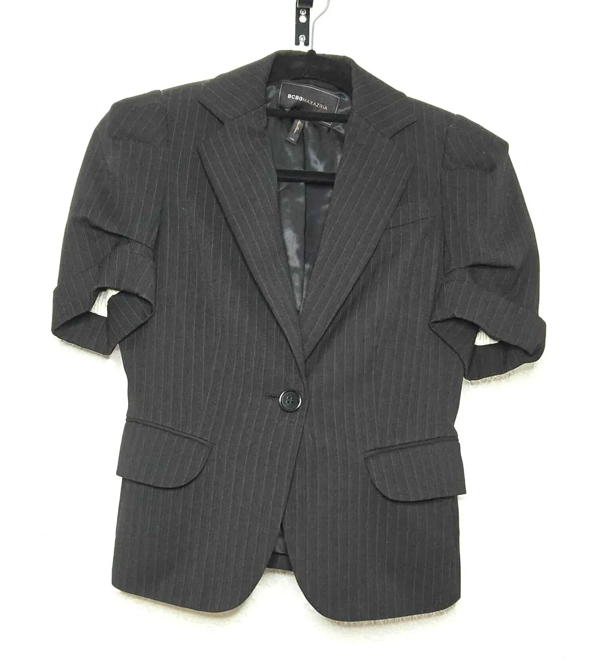 BCBGMaxazria Short Puff Sleeve Pinstripe V-neck Blazer Size XXS Black - $63 - From Myra