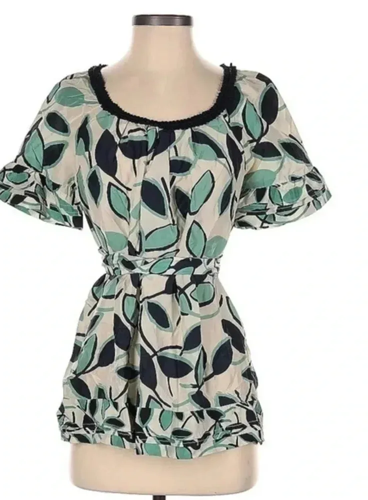 BCBGMaxAzria | 100% Silk Green Leaf Print Belt Sash Shirt Top Bouse Size XS Excellent preowned con... Show more