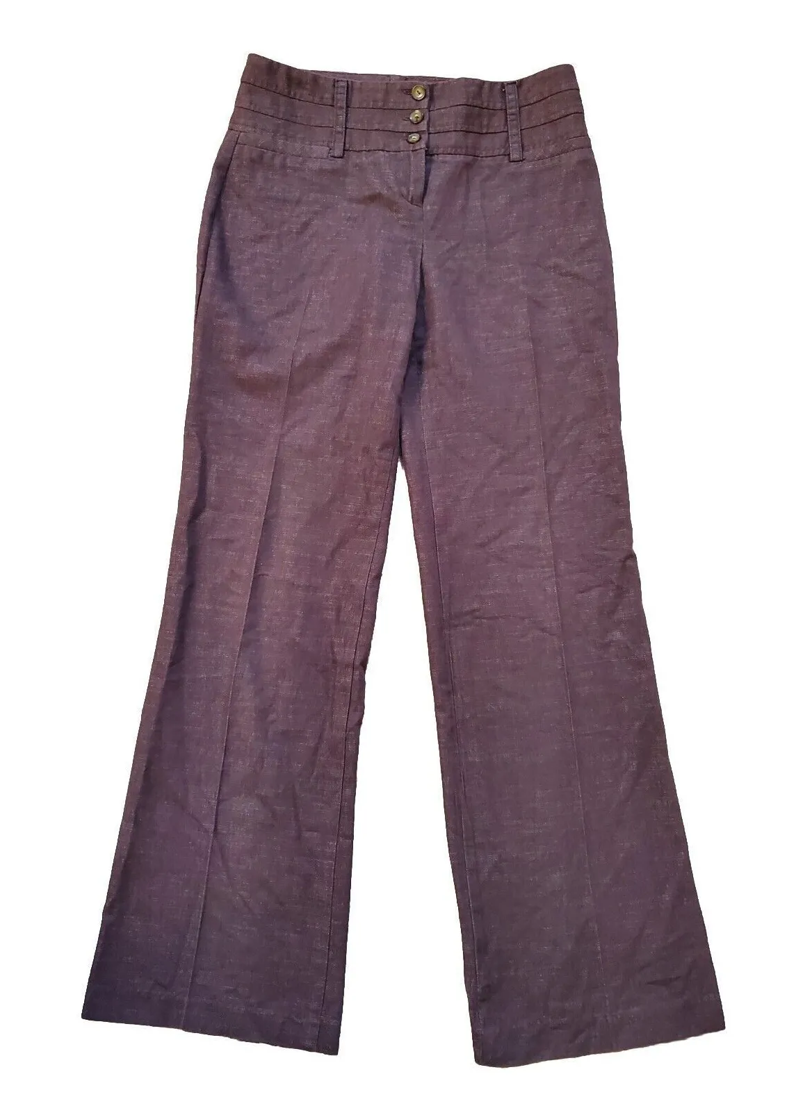 Elevate your wardrobe with these stylish Y2K 2000s BCX brown pants. These mid-rise bootcut wide leg flare trousers are perfect for casual wear or workwear. The zip and button closure ensures a comfortable and secure fit. The solid pattern and vintage style add a touch of nostalgia to your outfit. These women's dress pants are made for those who love both style and comfort. The size 5 regular fit is perfect for those who want a flattering look. Don't miss out on these versatile brown pants that can be dressed up or down.