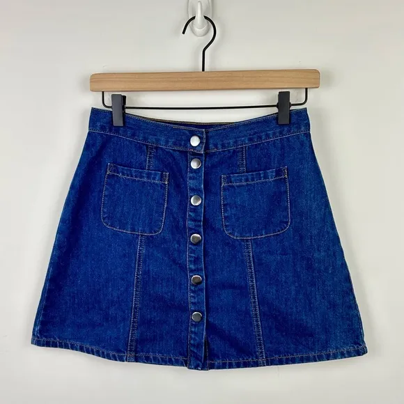 Excellent pre-owned condition! Size S Medium wash Button front Front pockets Approximate measureme... Show more