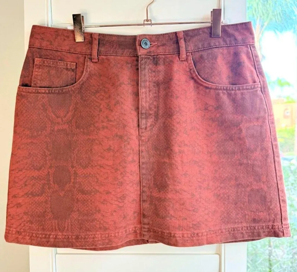 Sexy rock n roll downtown girl vibes with this easy to wear and style jean skirt in python print. Cl... Show more