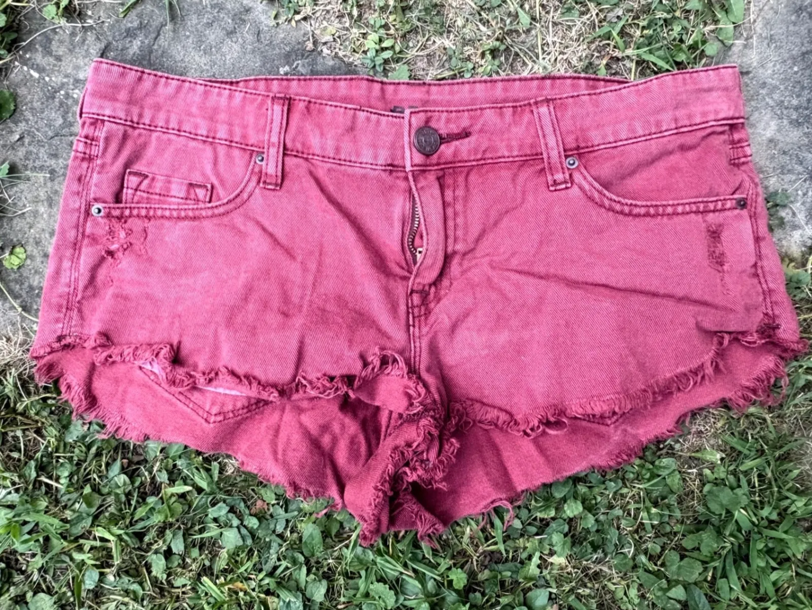 Meet your new favorite pair: these stylish burgundy denim shorts, boasting a vibrant hue and a touch... Show more