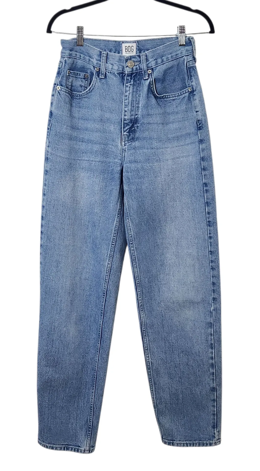 BDG baggy high-rise jeans with a tapered leg and a lighter wash denim with some faded details. Same-... Show more
