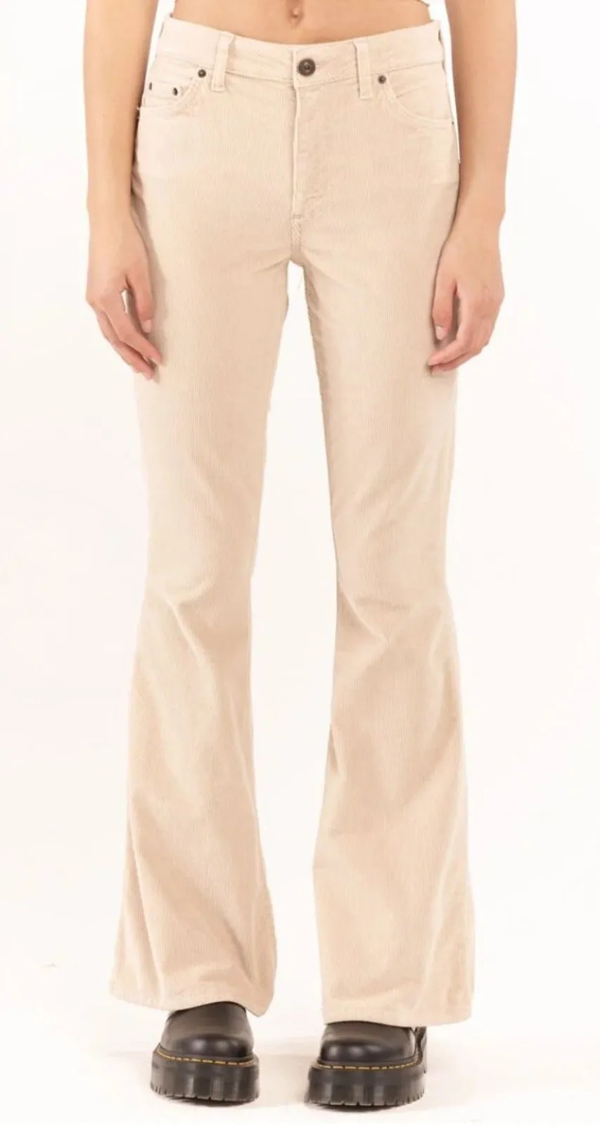 BDG Beige Cream Corduroy High Rise Flare Pants Jeans, Features a high-rise waist with button and zip... Show more