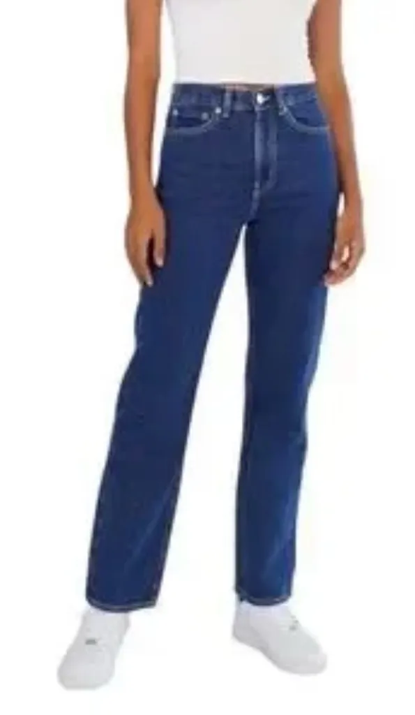 Preowned and in good condition! Chic and versatile 100% cotton straight leg cowboy jeans. Dark blue... Show more
