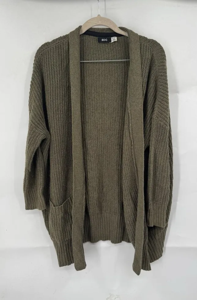 Good pre owned condition with mild wear to the knit. Size XS-s Open front. Has pockets. All meas... Show more