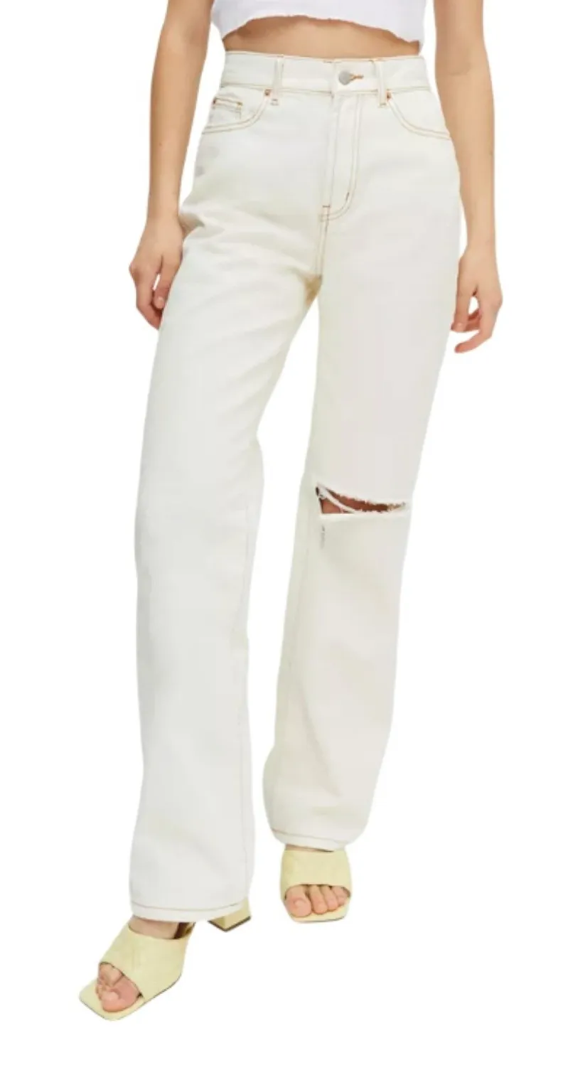 BDG Urban Outfitters Cream Loose Straight Jeans Distressed Knee Size 25 Casual Pre-Owned in Great Co... Show more