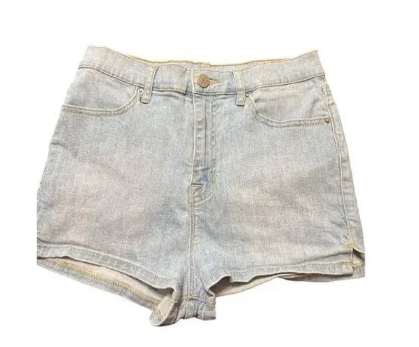Light blue BDG Urban Outfitters high waisted bootie shorts. Made from denim jean material with uniqu... Show more