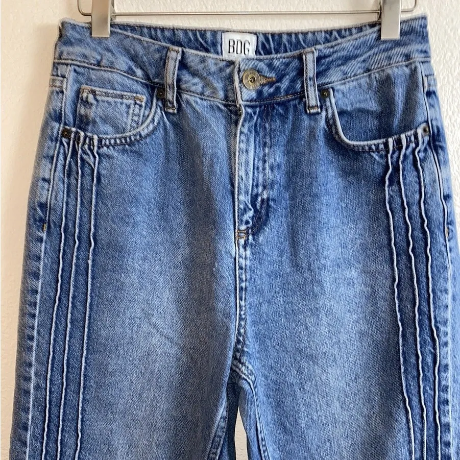 Chic high rise jeans by BDG. Features a classic blue denim look. Ideal for everyday wear.