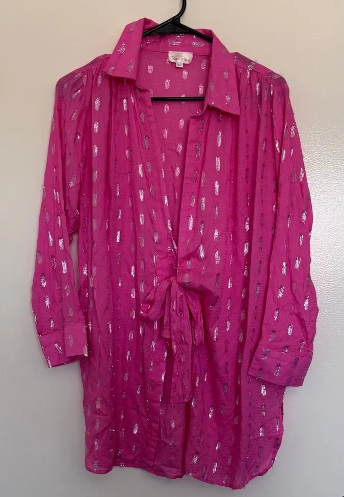 Beach Bunny Women's Tie Front Coverup in Hot Pink/Silver Size XS Pink - $23 - From Katie