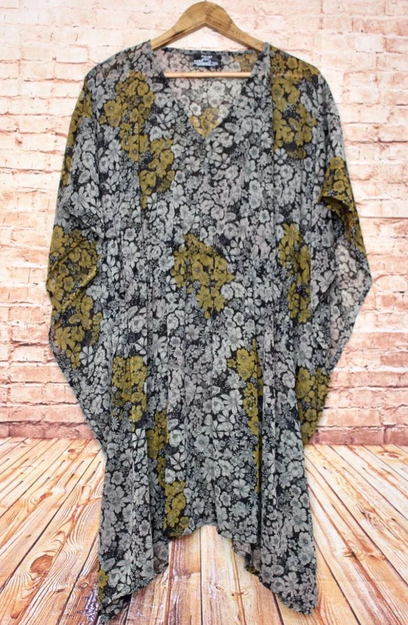 Azur | black cream floral swim cover up/kaftan sheer Plus size / one size fits all 🔆Smoke/Pet free... Show more