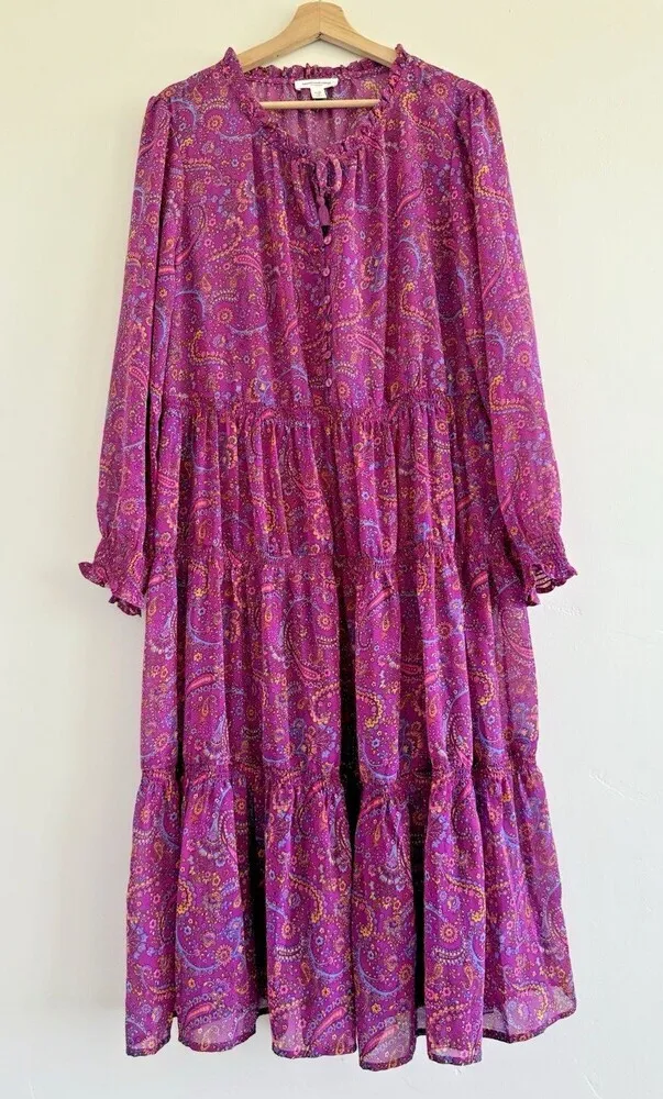 Beach Lunch Lounge Floral Cottagecore Tiered Midi Dress XL long sleeve Coastal Blue - $60 - From Yosanny