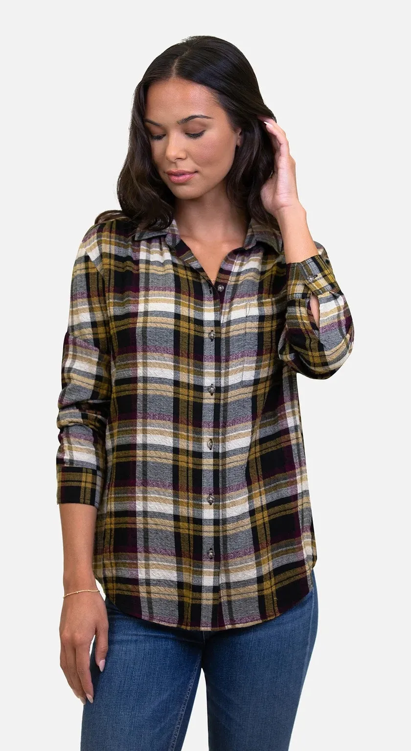 Beach Lunch Lounge Wheat N Roses Elliot Button Up Plaid Flannel Shirt Yellow, white, purple, and bl... Show more