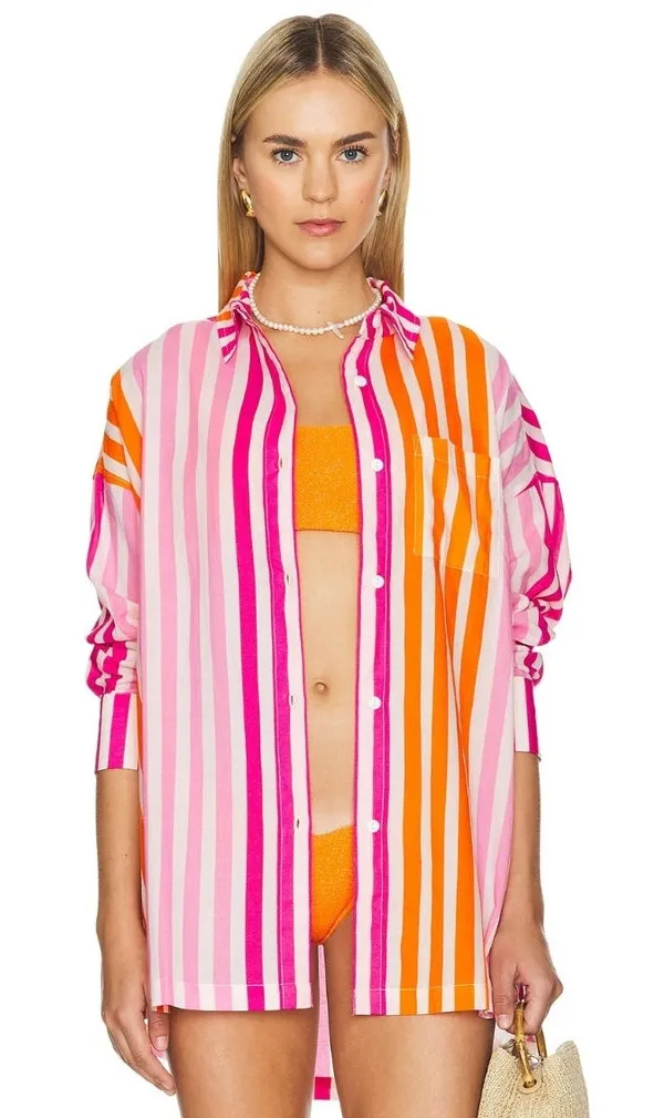 Beach Riot Alexa Top in Sunset Stripes Swim Cover-up Size Large 100% Polyester Machine Wash Measure... Show more