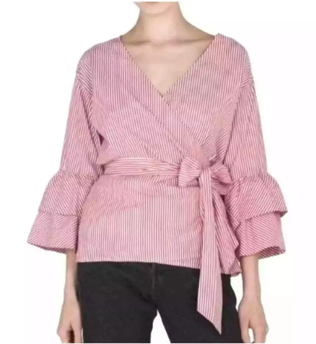 BeachLunchLounge Arianna Red & White Striped Faux Wrap Top Size Small * v-neck * faux wrap with atta... Show more