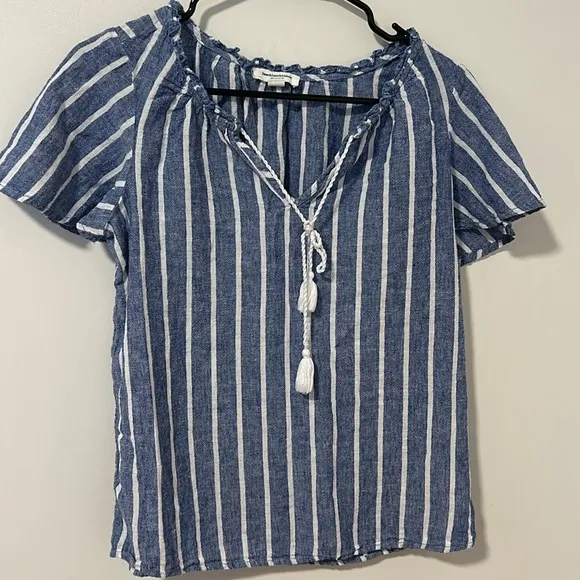 Beach Lunch Lounge 55% Linen 45% Cotton Tassle Blouse Coastal Lagenlook Size XS Blue - $28 - From Maddie