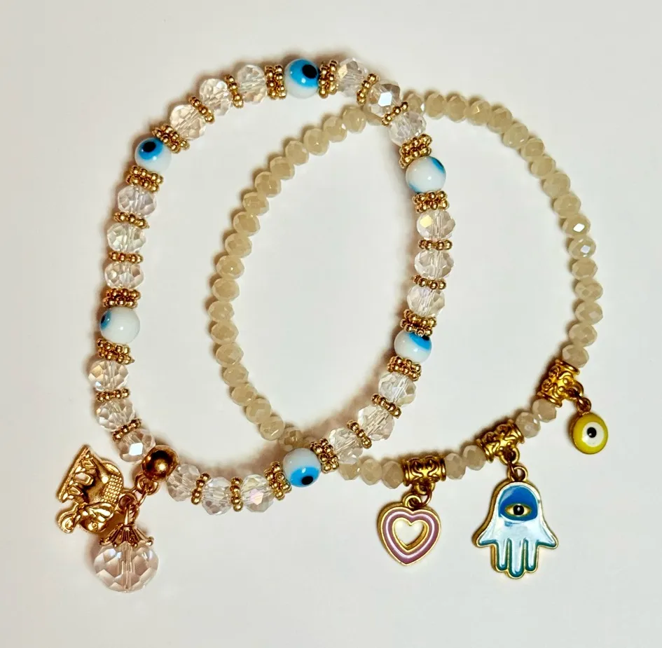 Beaded Charm Bracelets with Evil Eye and Heart (Set J) Gold - $15 - From Loretta