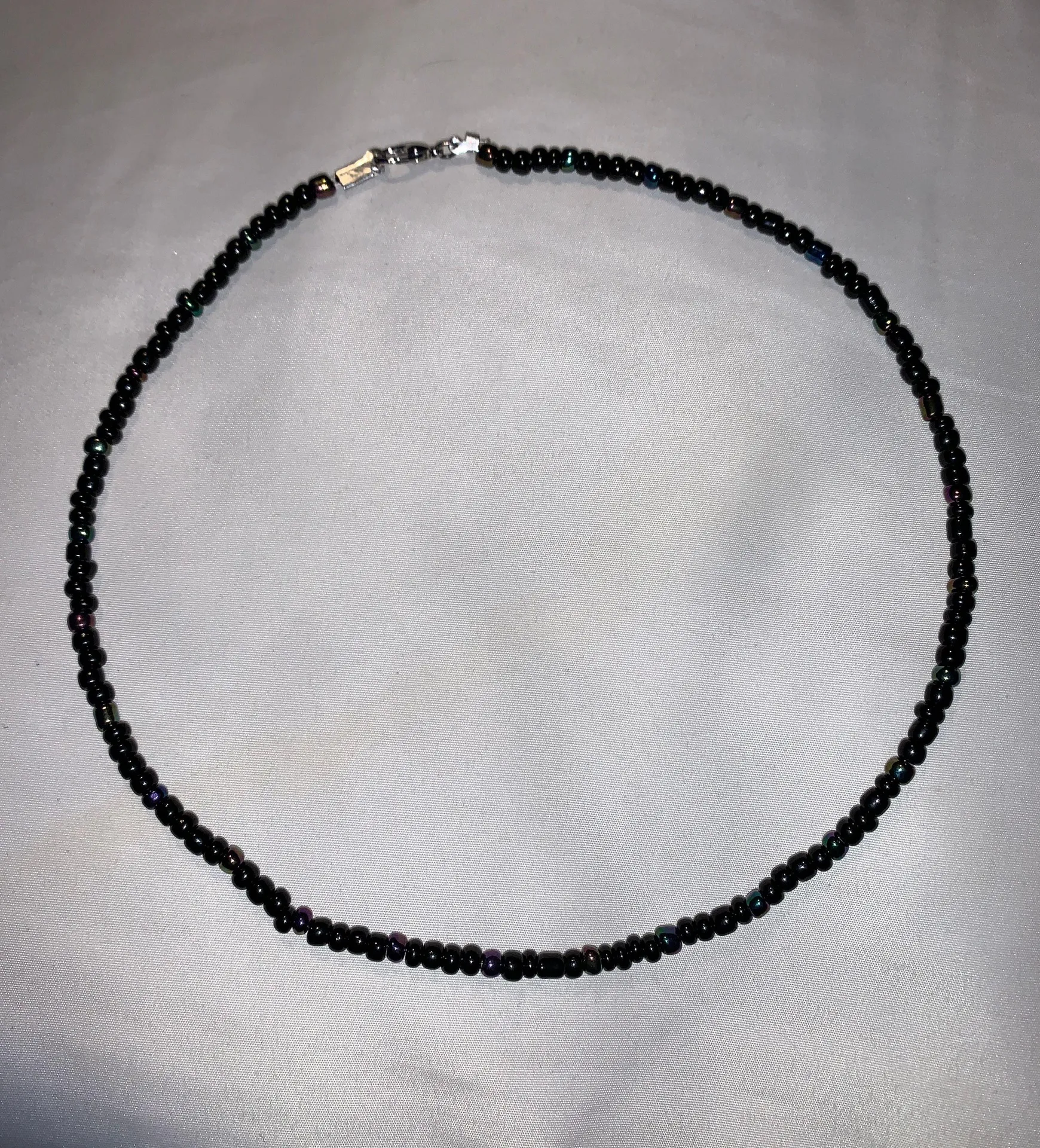 Handmade beaded necklace It has a black bead and iridescent bead pattern Bought on here and just do... Show more