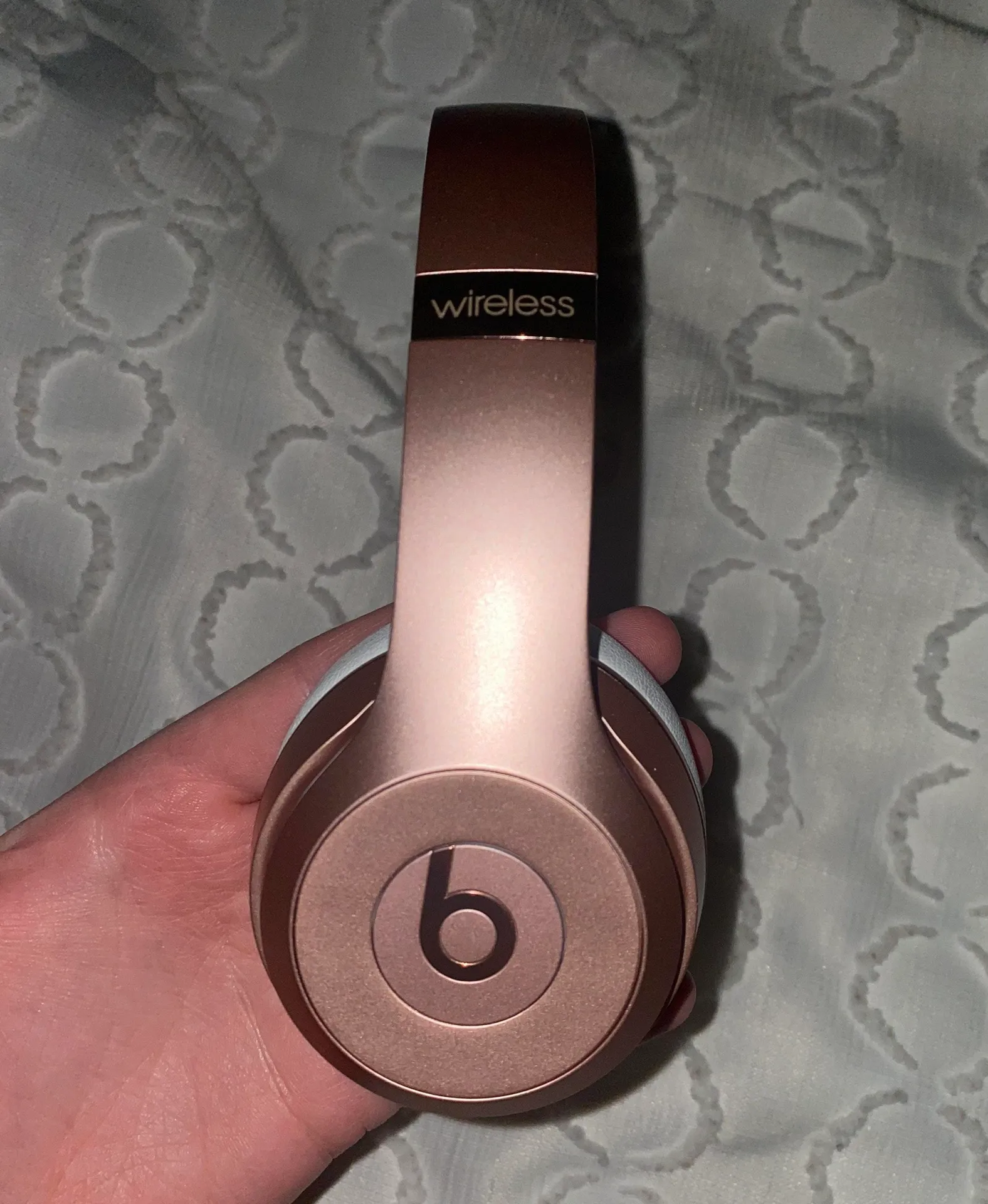 Beats by Dre, wireless headphones, rose gold. I got them for Christmas a couple years ago and only u... Show more